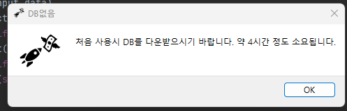 처음 시작했을때 DB가 없으면 아래와 같이 DB를 다운로드 하라는 메세지 창이 나옵니다.