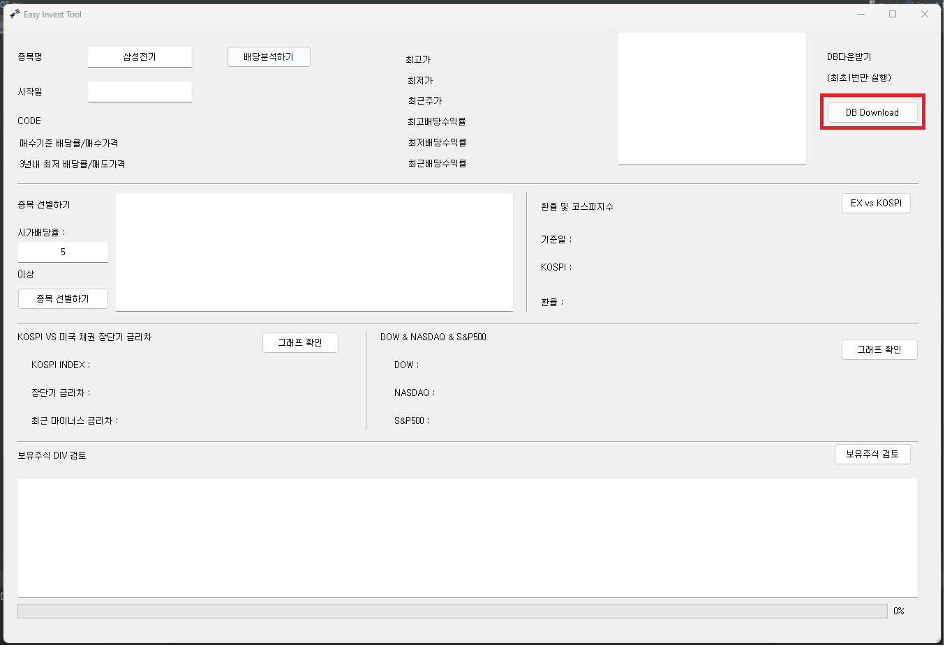 최초로 DB를 다운로드 하는 기능을 추가했고, 메시지 창을 pyqt5로 구현했다.