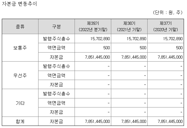 최근 3년동안 자본금 변동추이도 변화 없습니다.