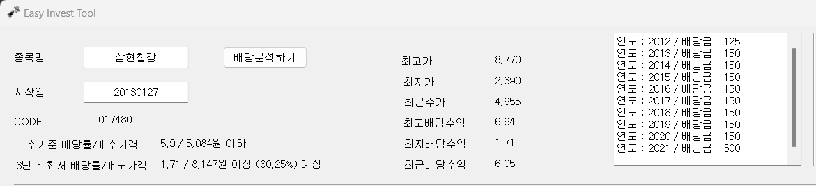 배당수익률도 낮아서 5천원 아래가 매수기준가인데 최근 주가가 4,955원 정도 되니 매수조건이 됩니다.