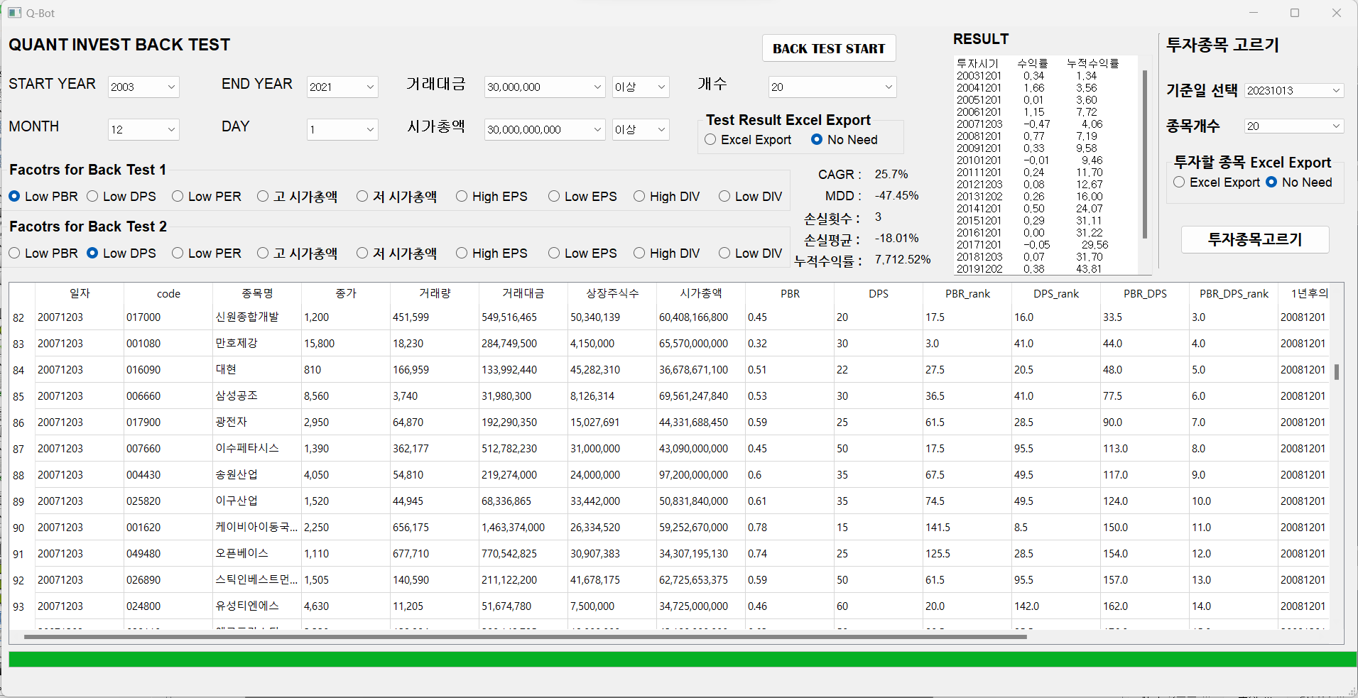 CAGR, MDD외에도 손실난 횟수, 손실평균, 누적수익률을 직관적으로 확인할 수 있도록 Label을 추가했다.