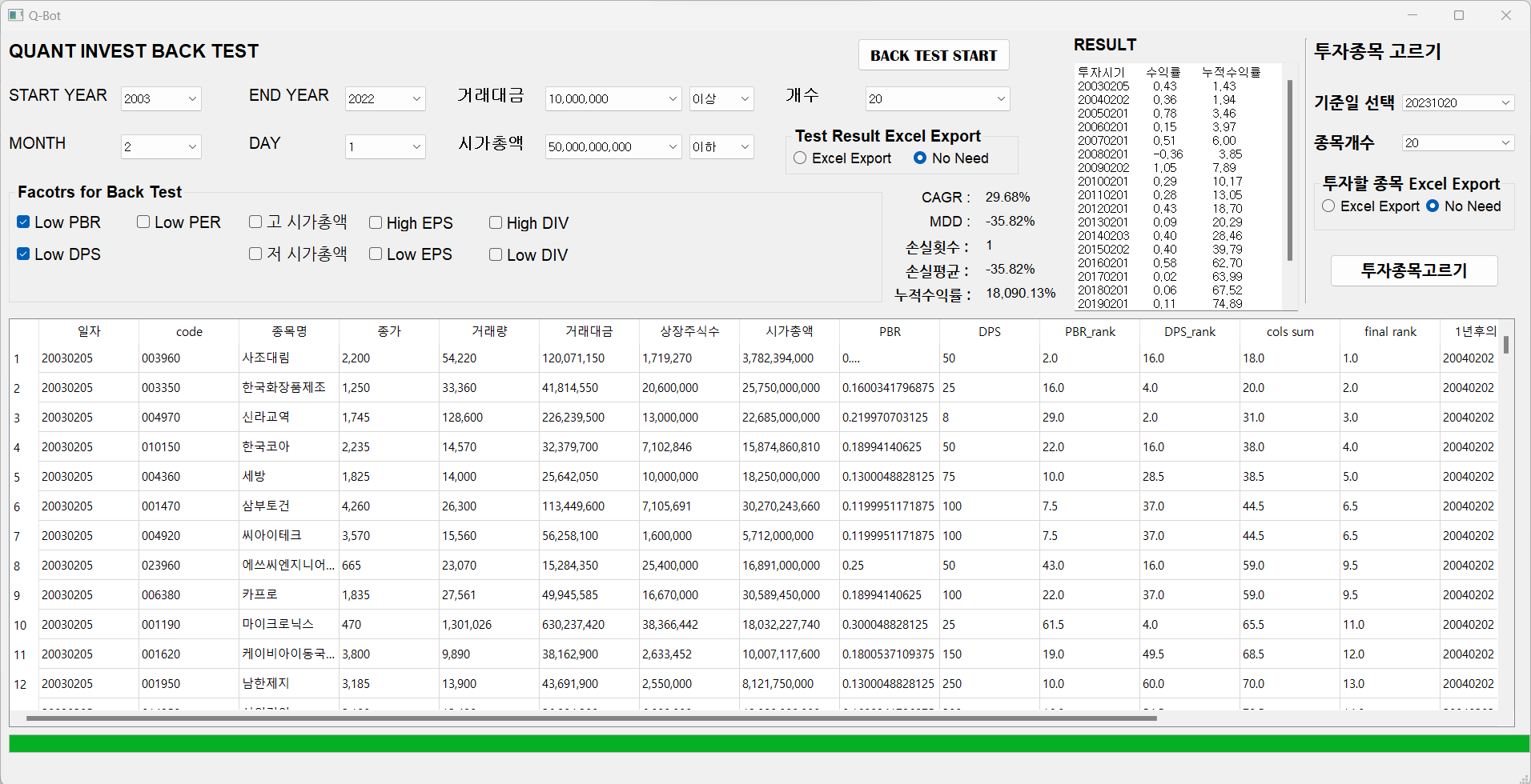 Quant 투자를 위한 백테스트와 종목을 선정할 수 있는 툴인데 Q-Bot이라고 이름을 붙였다.