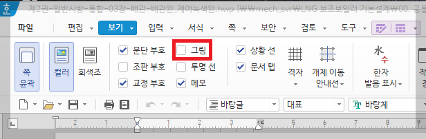 한글의 상단 '보기' 메뉴에서 '그림'을 체크해 줍니다.