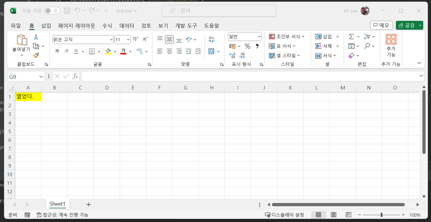 win32com이 openpyxl과 다른점은 엑셀을 열어 놓고 코딩을 할 수 있다는 점입니다.