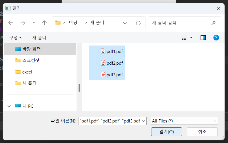여기에서 병합할 PDF를 선택하시면 됩니다.