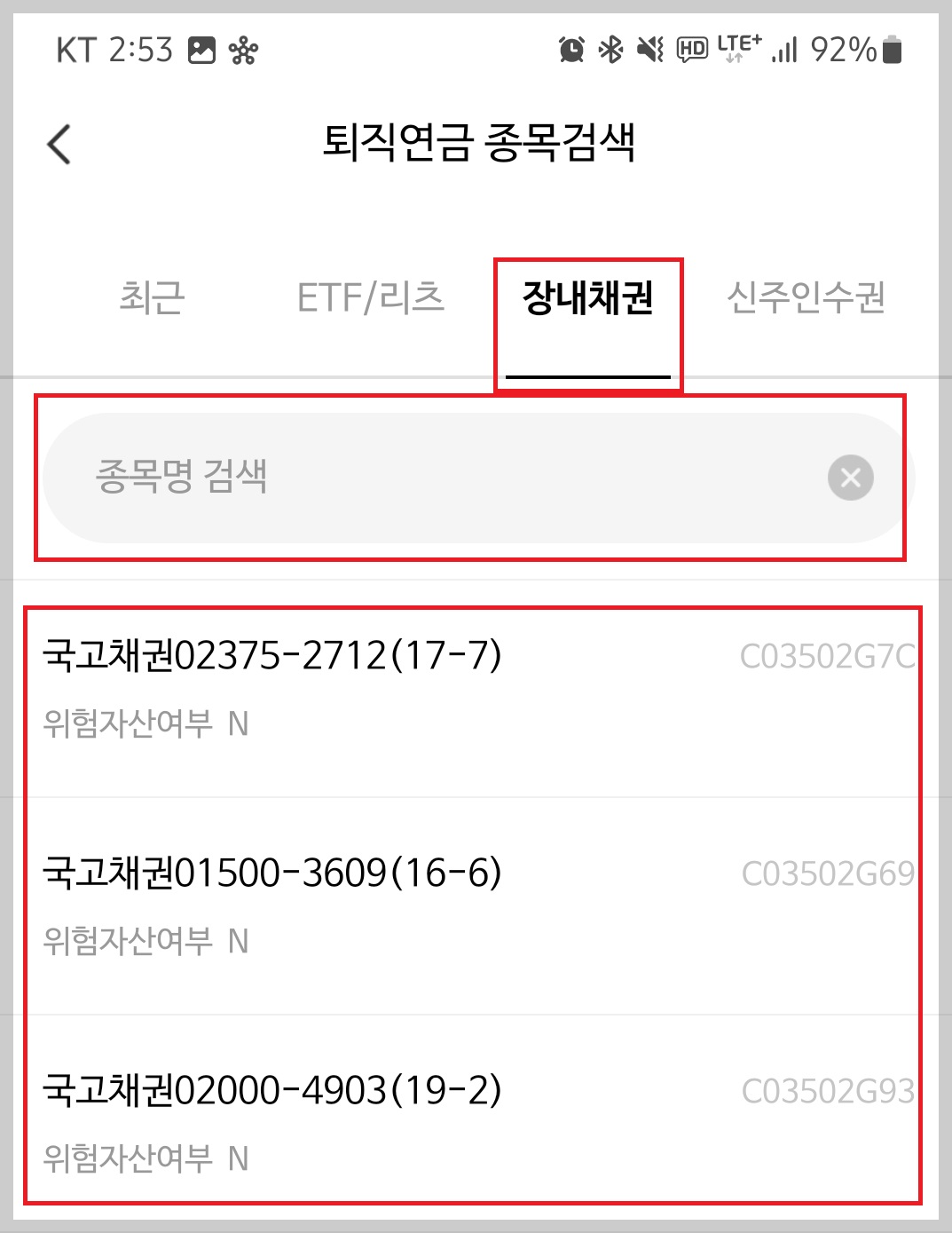 장외채권 메뉴에서 채권명으로 검색을 해도 되고, 국채로 필터링해서 리스트 중에서 골라도 됩니다.