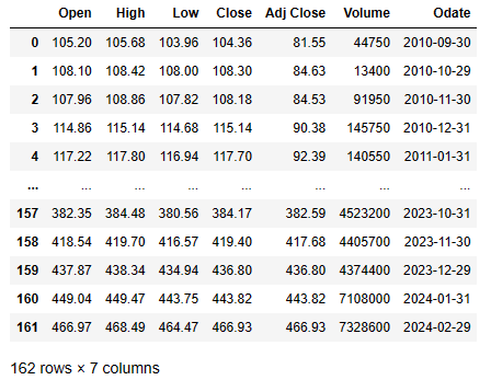 데이터를 가져왔습니다. 저는 월별로 투자를 한다고 가정하고 백테스트를 진행할 에정이기 때문에 월별 마지막날을 가져와 보도록 하겠습니다.