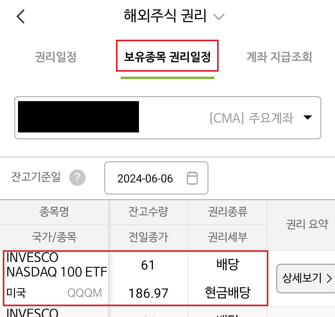 이렇게 일반 CMA 계좌에 들어온 배당을 확인할 수 있습니다.