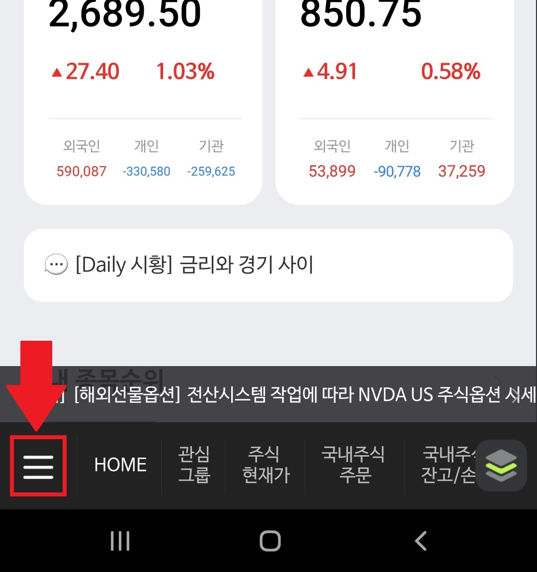 I. 우선 NH투자증권 나무앱 홈으로 갑니다.