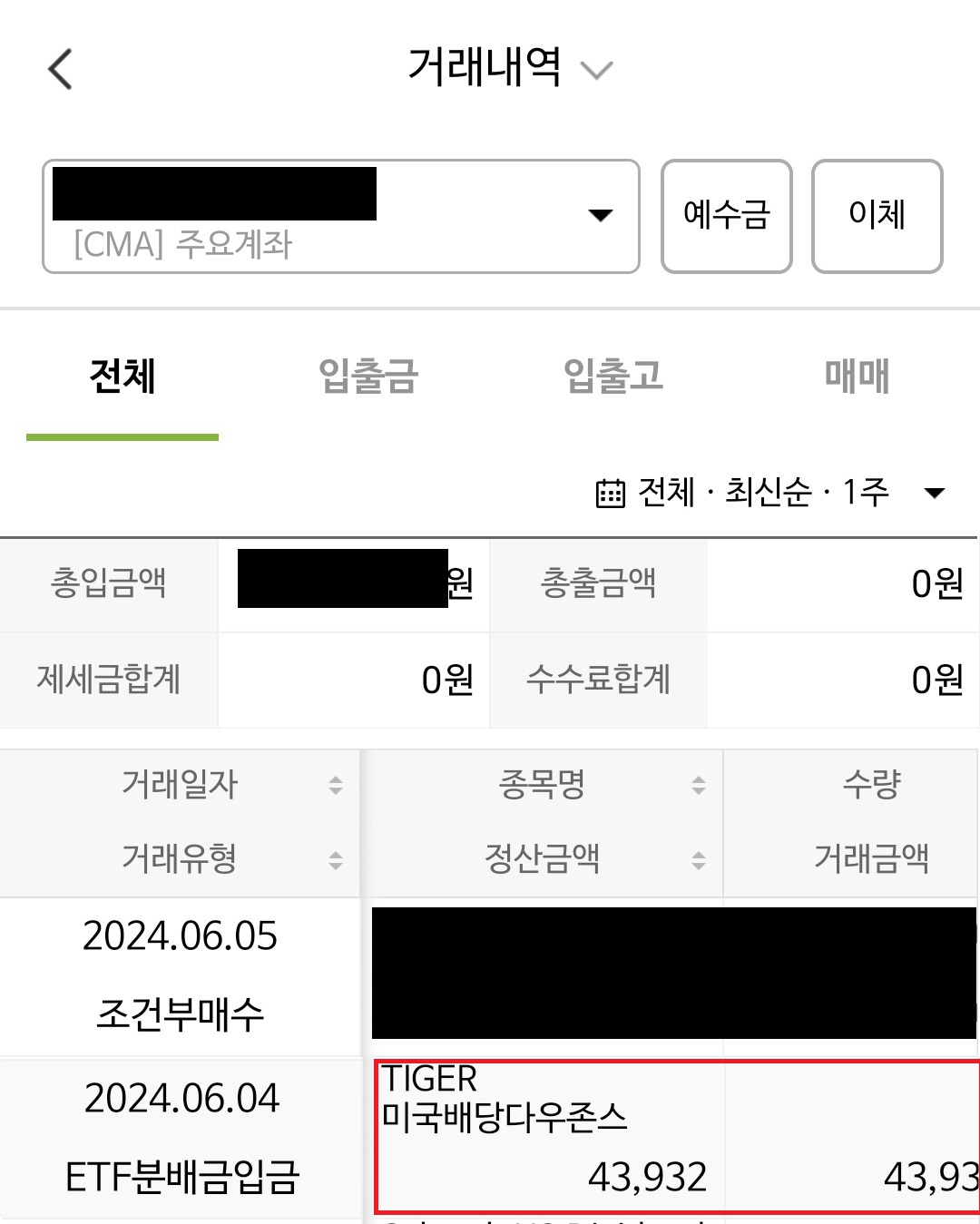 2. 거래내역에서 배당금 확인하기