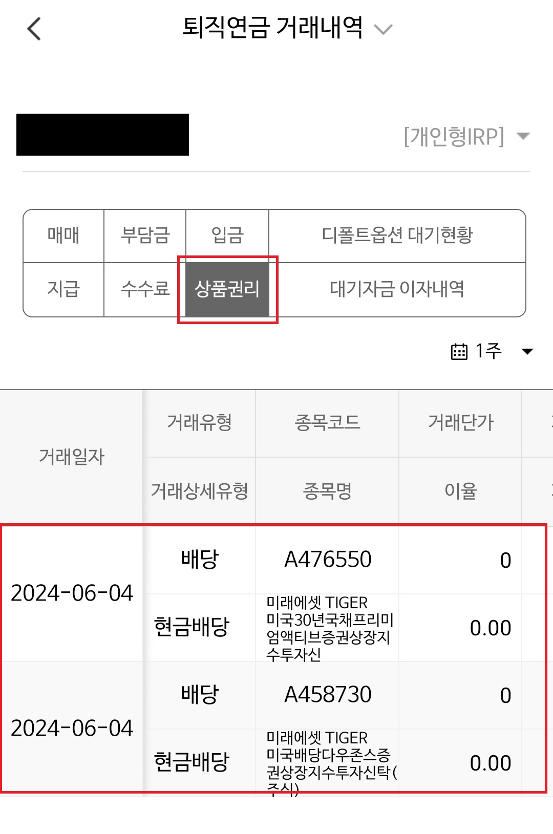 II. IRP 계좌에 들어온 배당금 확인