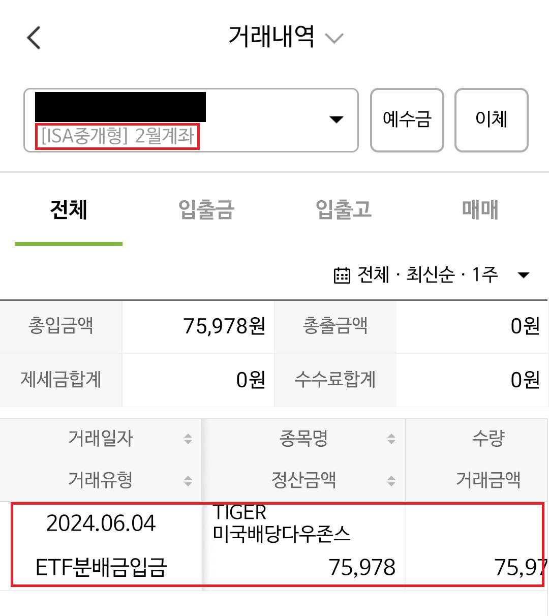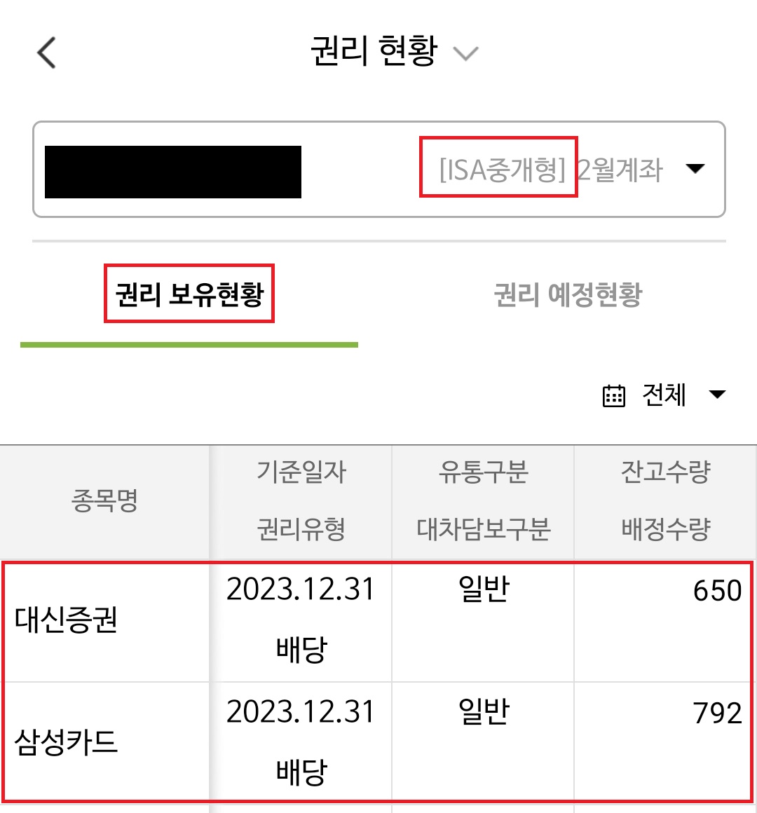 ISA계좌에서도 확인이 가능합니다.