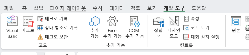 그러면 개발도구 탭이 생긴게 보이시죠?