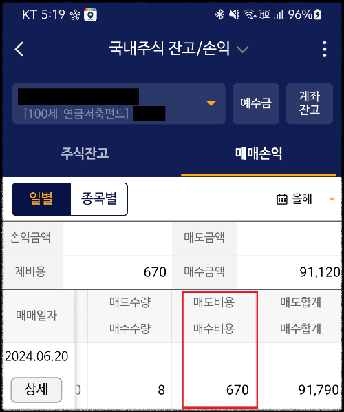 저는 이 방법 밖에 없는 줄 알고 QV에서 우리 딸 아이 연금저축 계좌를 개설했습니다. 그리고 약 9만원치 ETF를 샀는데, 거래 수수료가 자그만치 670원이나 나왔어요.