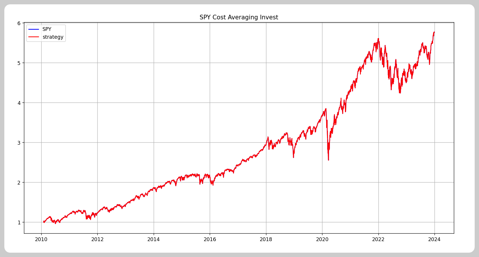 백테스트 결과를 보면 SPY만 적립식으로 사는것이 가장 수익률이 좋습니다.