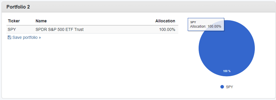 비교를 하기 위해 SPY만 따로 100% 구성하는 포트폴리오도 만들었습니다.