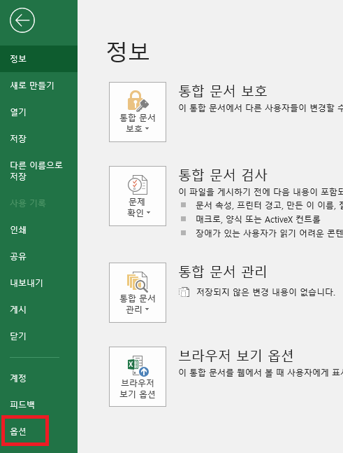 옵션창이 여리면 왼쪽에 리본 사용자 지정을 선택해 주시고, 오른쪽에 개발 도구를 선택해 주시면 됩니다.