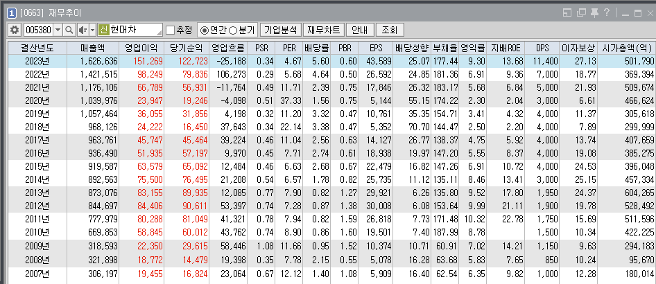배당을 잘 주는 대기업인 현대차를 보더라도 ROE가 최근 몇 년동안 그리 높지 않다. 작년에 그나마 13.68%가 나왔다.