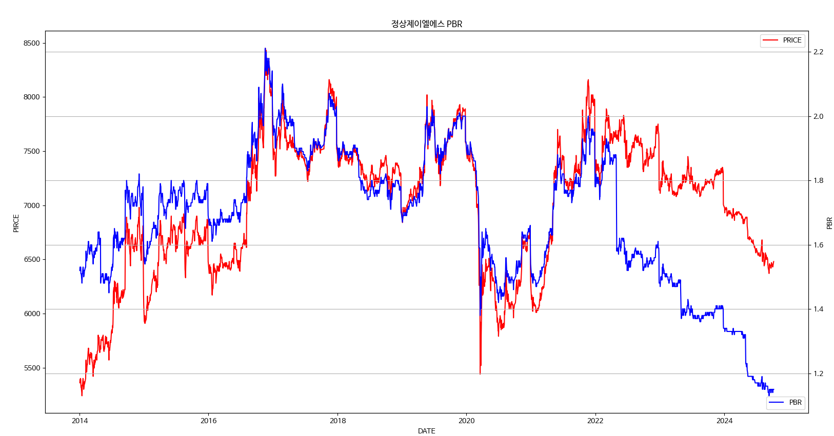 PBR과 주가를 비교한 그래프를 보더라도 PBR이 10년 동안 가장 낮은 수치다.