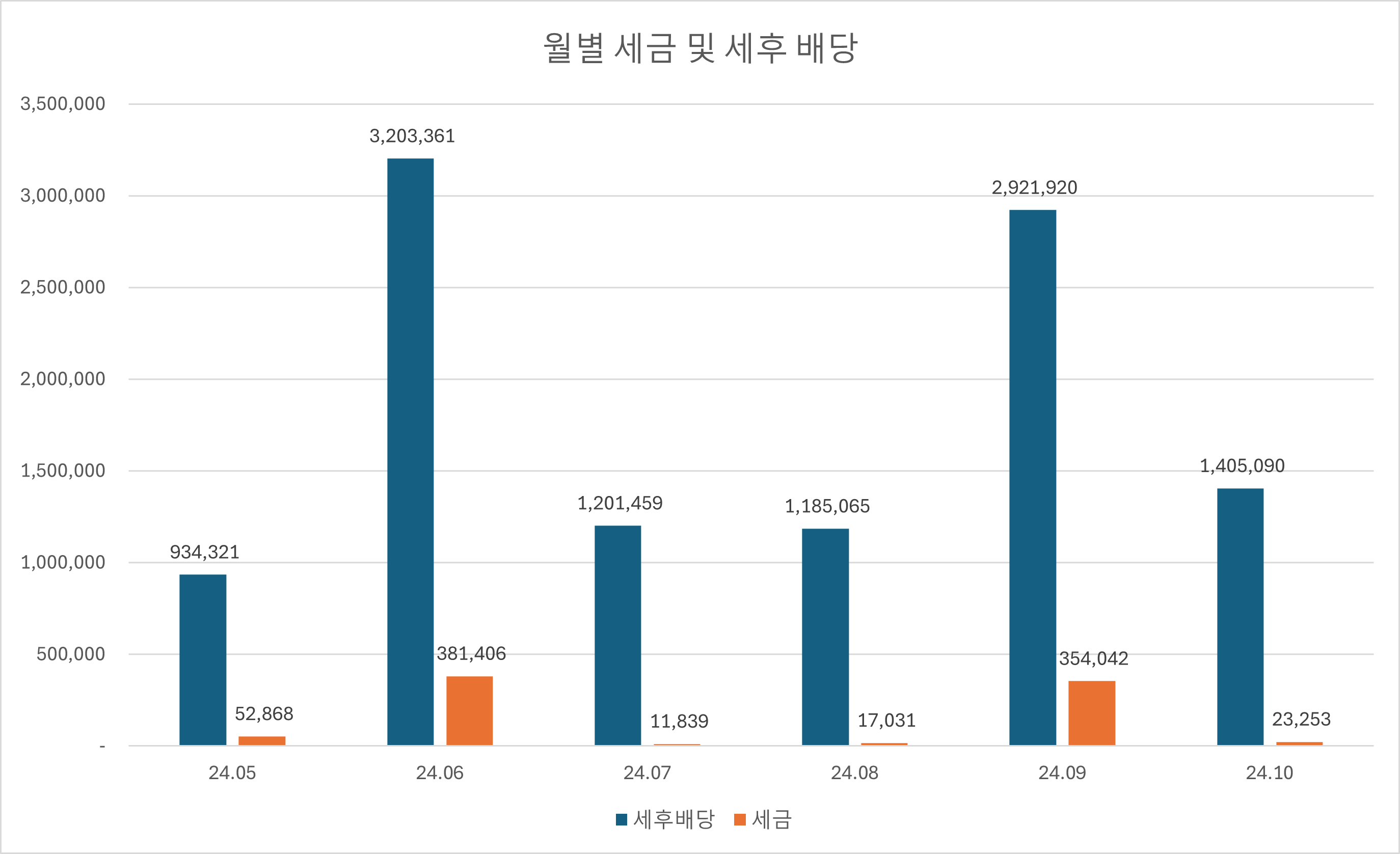 2024년 10월 배당이 나왔습니다. 세후 1,405,090원입니다.