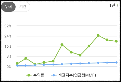 연금형MMF와 비교해서 수익률 차이를 나무어플에서 확인할 수 있다.