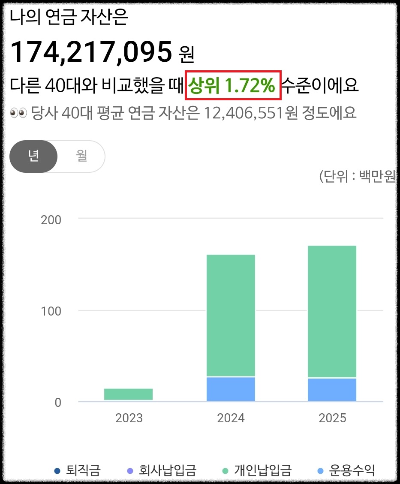 그런데 벌써 개인연금자산 규모가 상위 1%가 되었다.