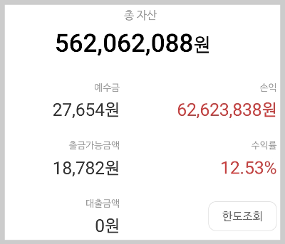 내 계좌의 금융자산이 5억 6천만원이 넘는다. 아내계좌까지 합하면 7억원이 넘는 금액이다.