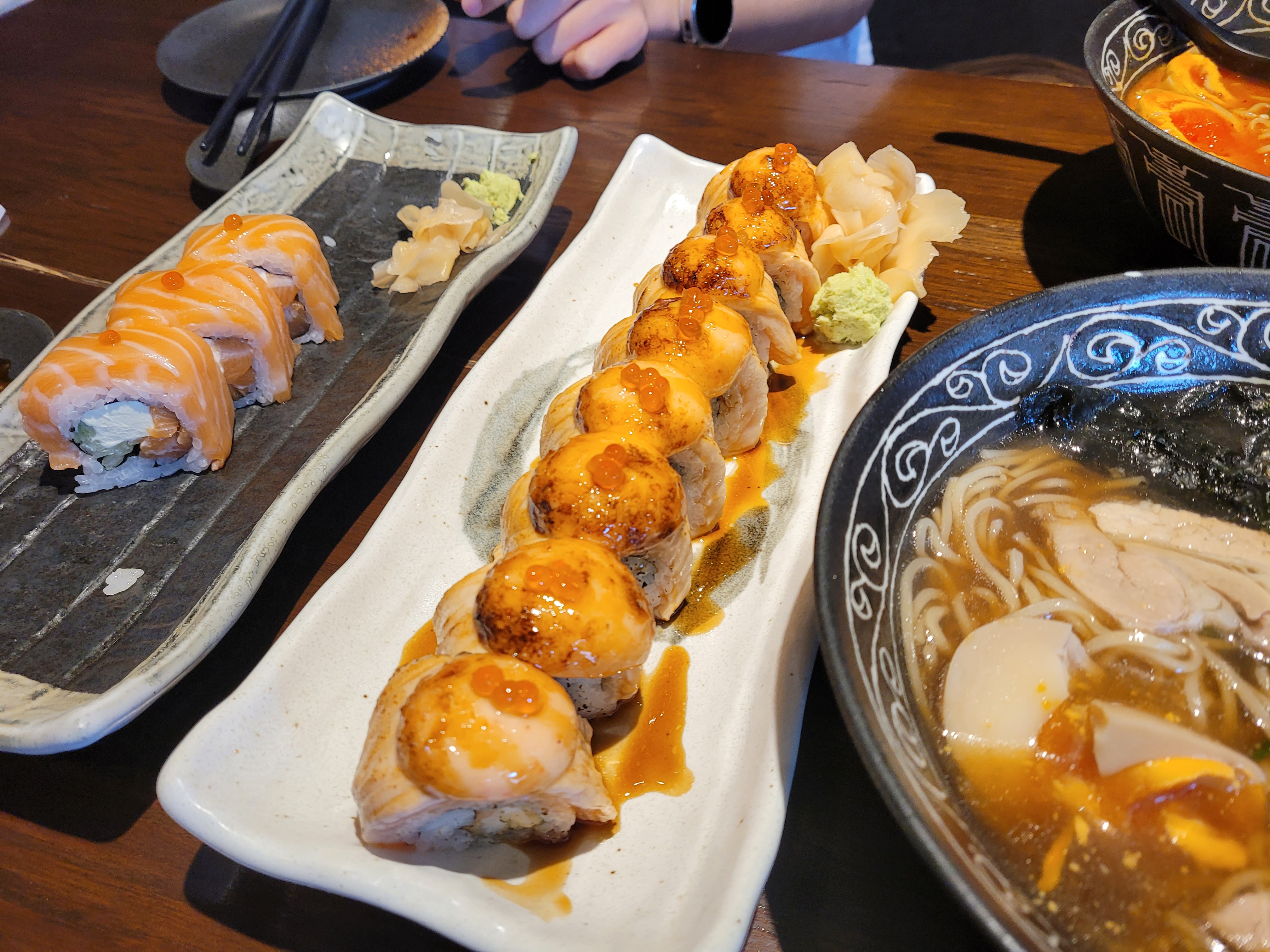 우리가 주문한 음식은 라멘과 스시롤 그리고 초밥이다.