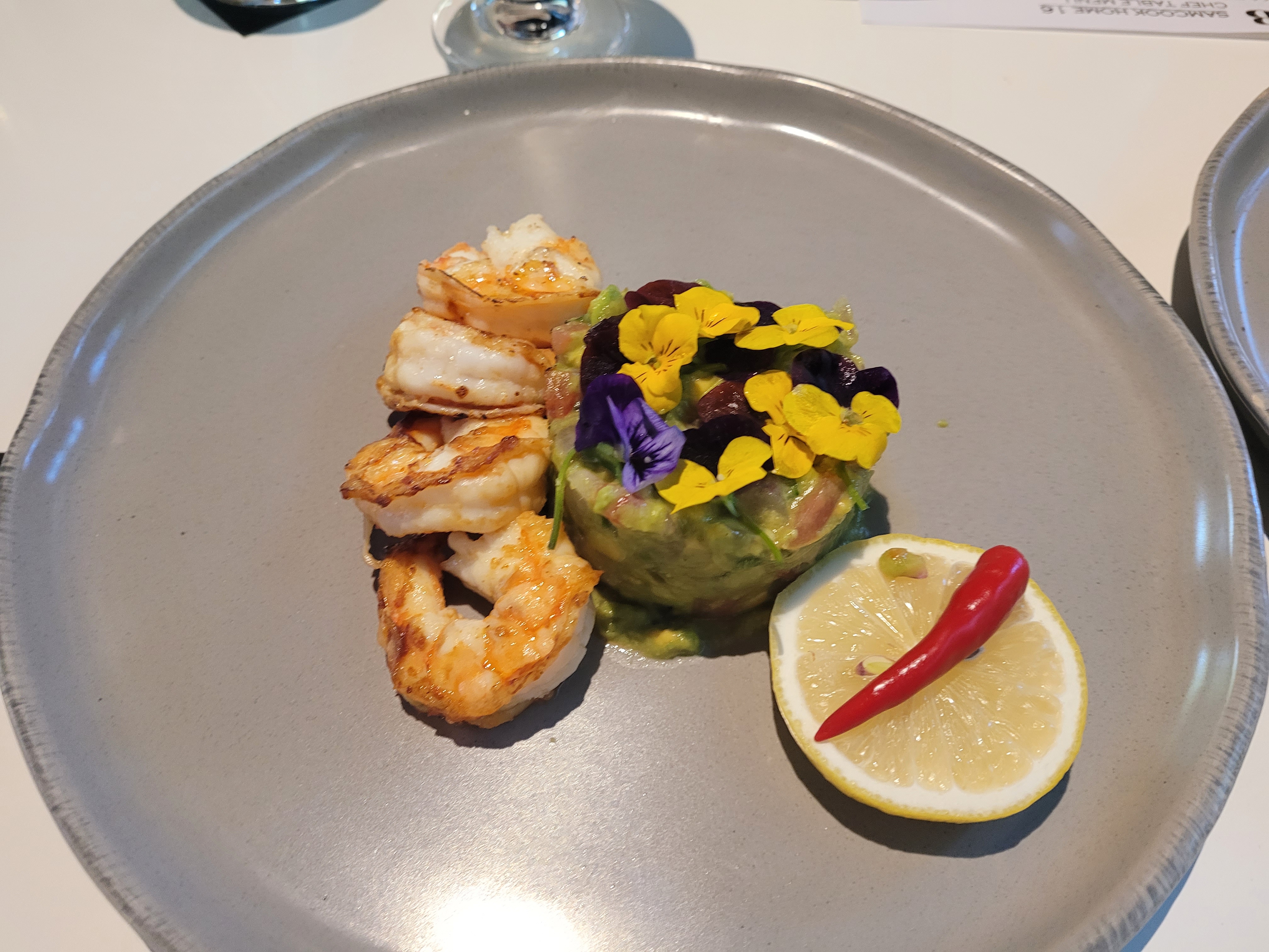 첫 번째 추가요리는 새우와 아보카도 요리였다.