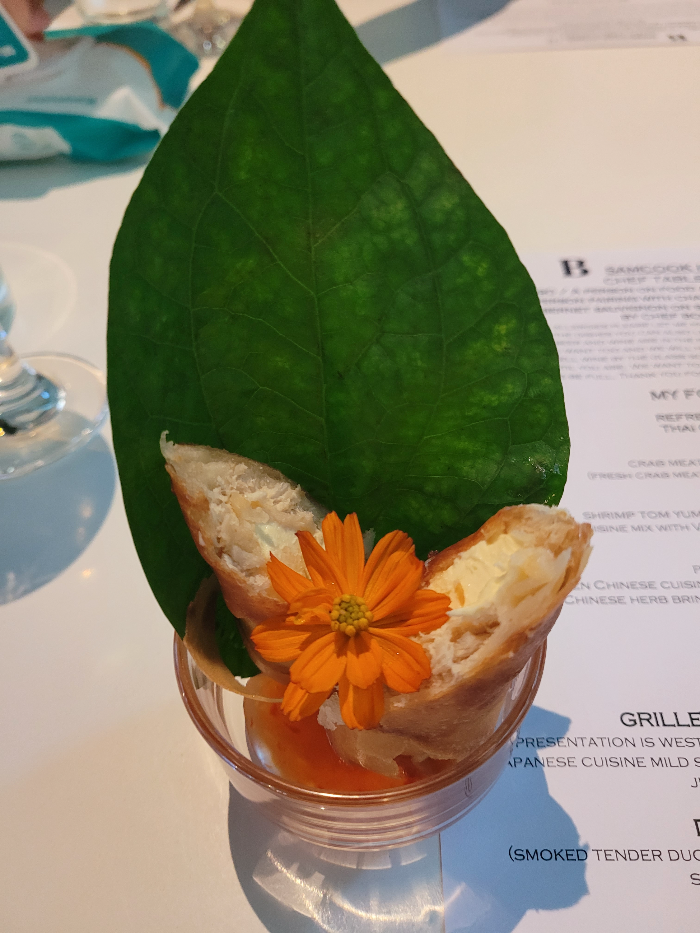 위의 사진에서 처럼 모든 음식은 꽃이 올려져 있다.