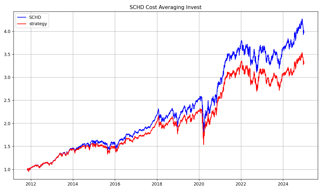 그래프를 보면 파란색은 SCHD의 주가차트에요.