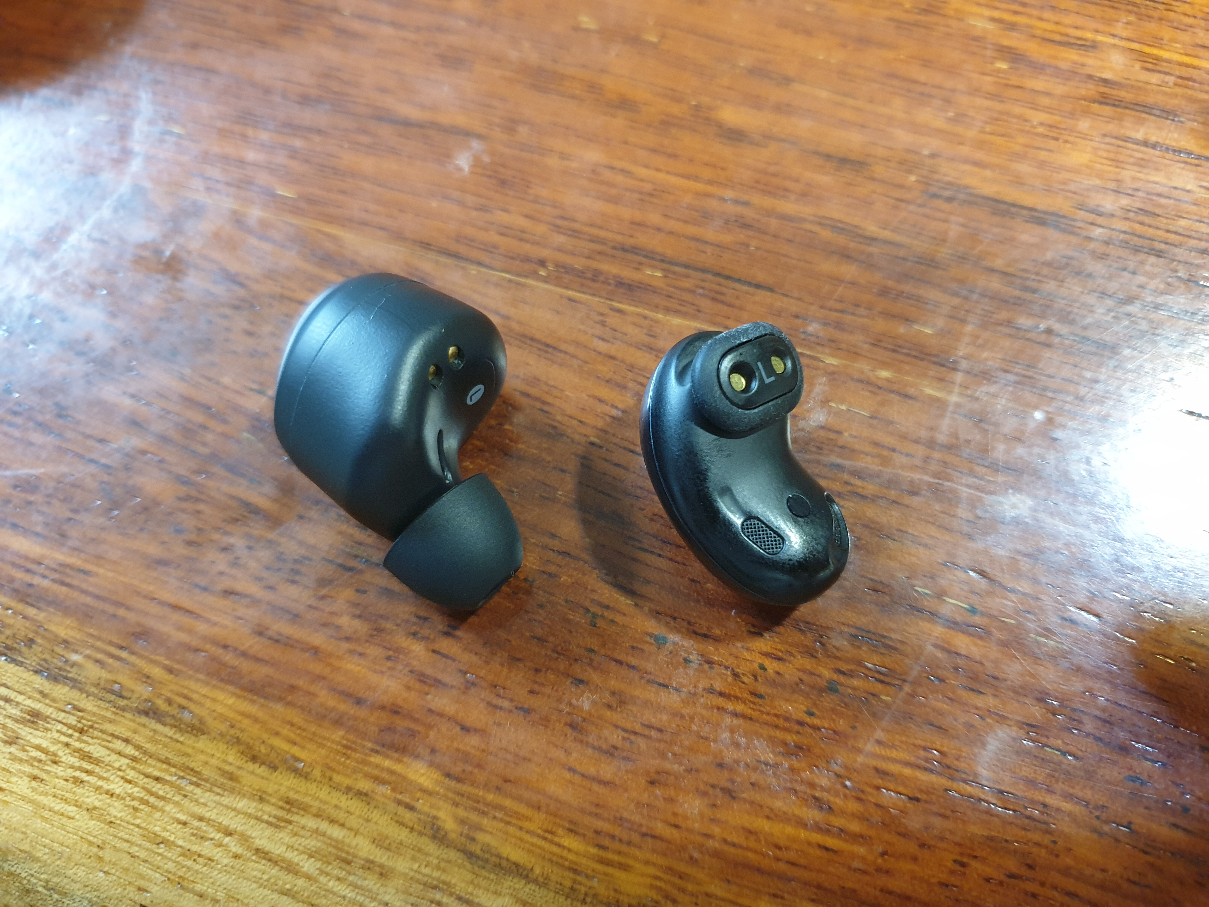 기존에 쓰던 스카이 제품과 비교 사진입니다. ANC200은 터치형이 아니라 버튼을 꾹꾹 눌러줘야 하는데, 버즈 라이브는 터치형이라 사용감이 훨씬 편합니다.