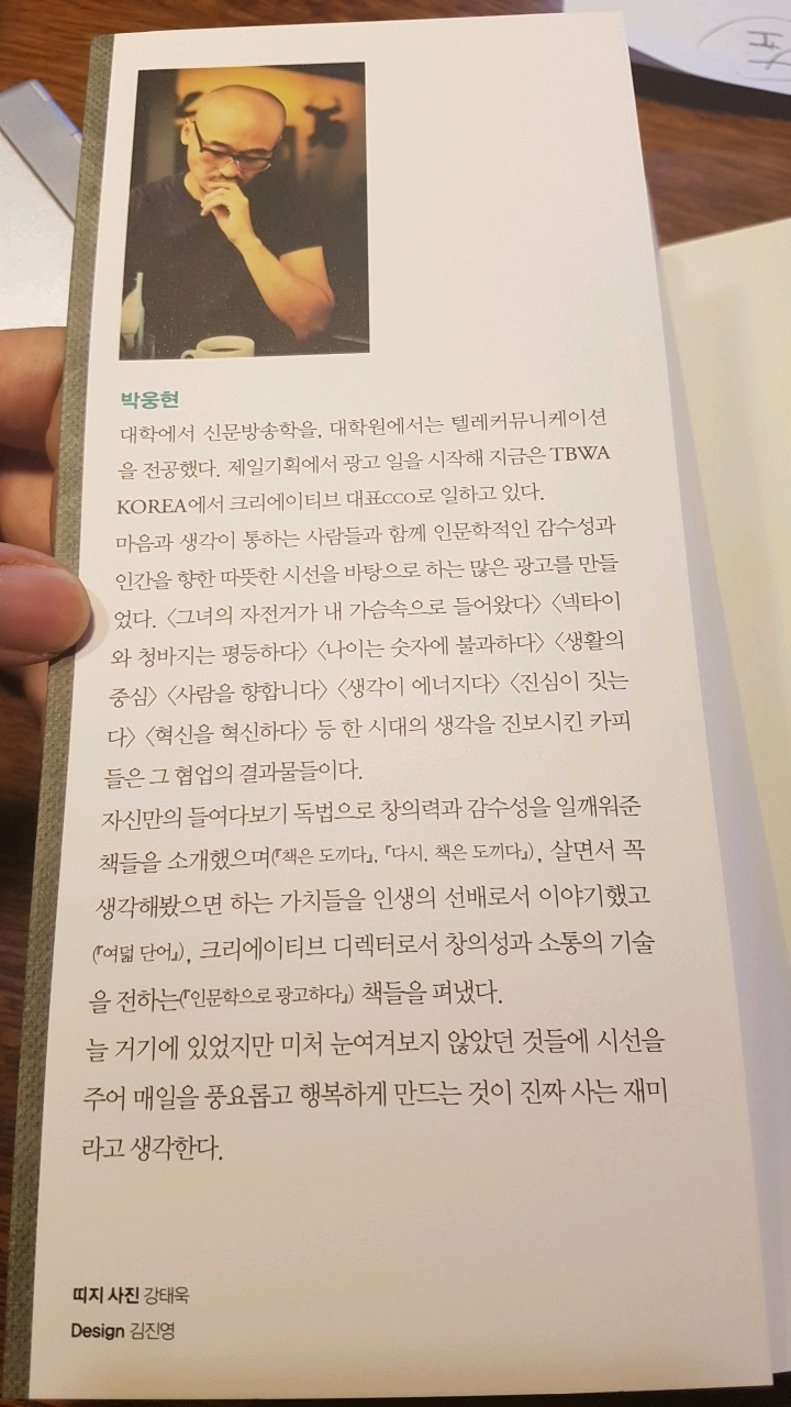 작가 박웅현은 <책은 도끼다>로 유명해진 작가인데 저는 아직 이 책은 못 읽어봤어요.