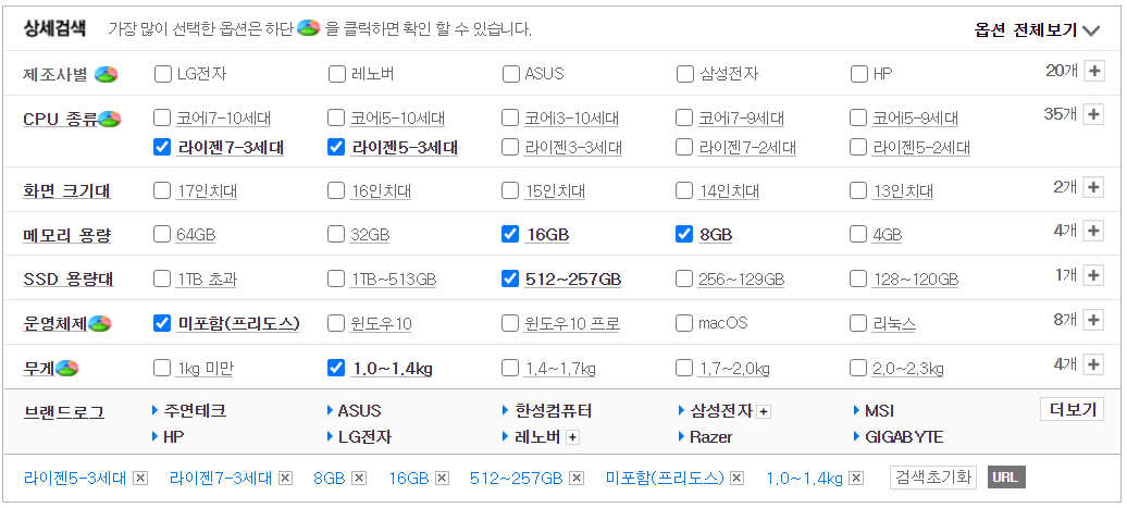 이번에는 굳이 ASUS가 아니더라도 내가 원하는 사양과 가격에 사기위해 모든 브랜드를 열어놓고 찾아보았습니다.