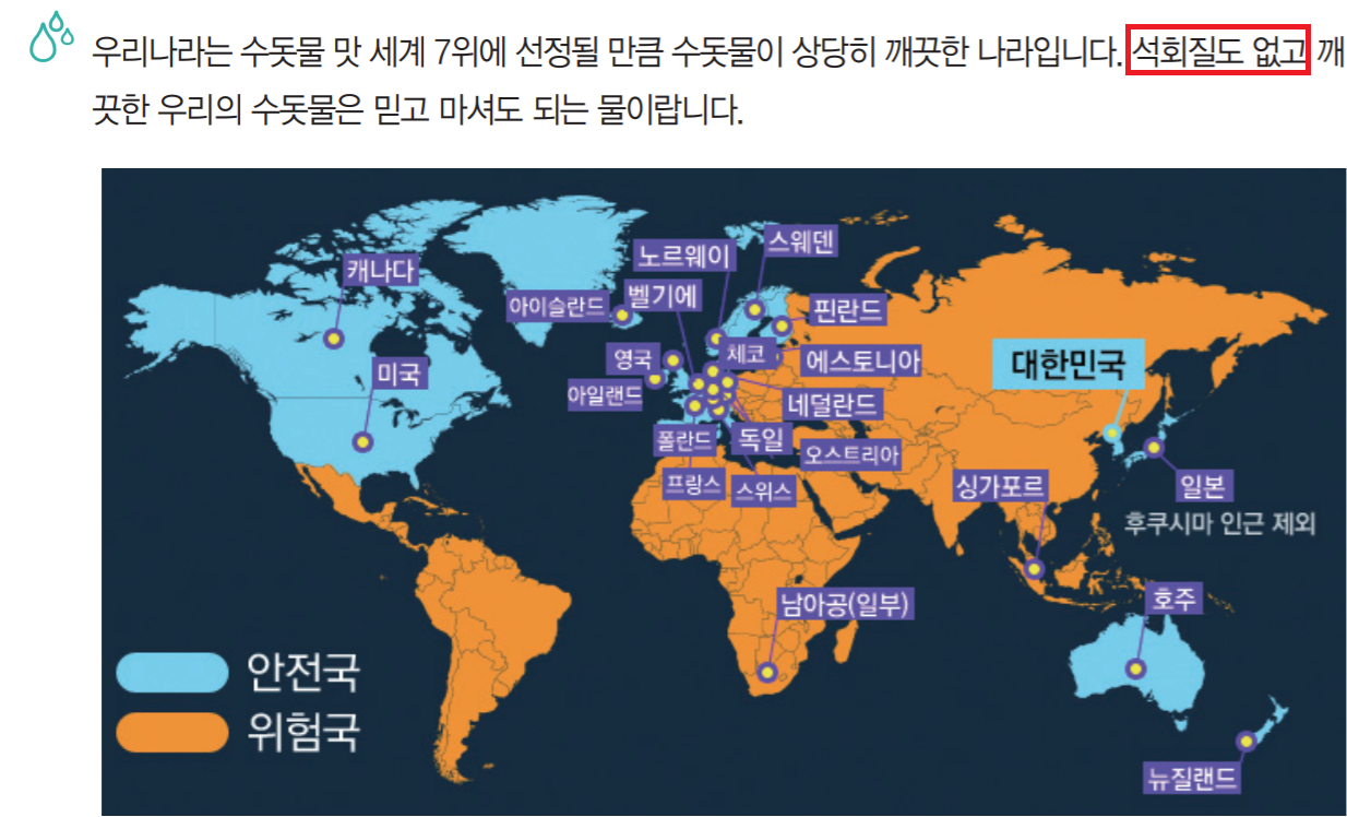 하지만 우리나라는 석회질 함유량이 다른 국가에 비해서 극격히 낮습니다. K Water가 석회질이 없다고 광고할 정도이니 믿어도 될 것 같습니다.