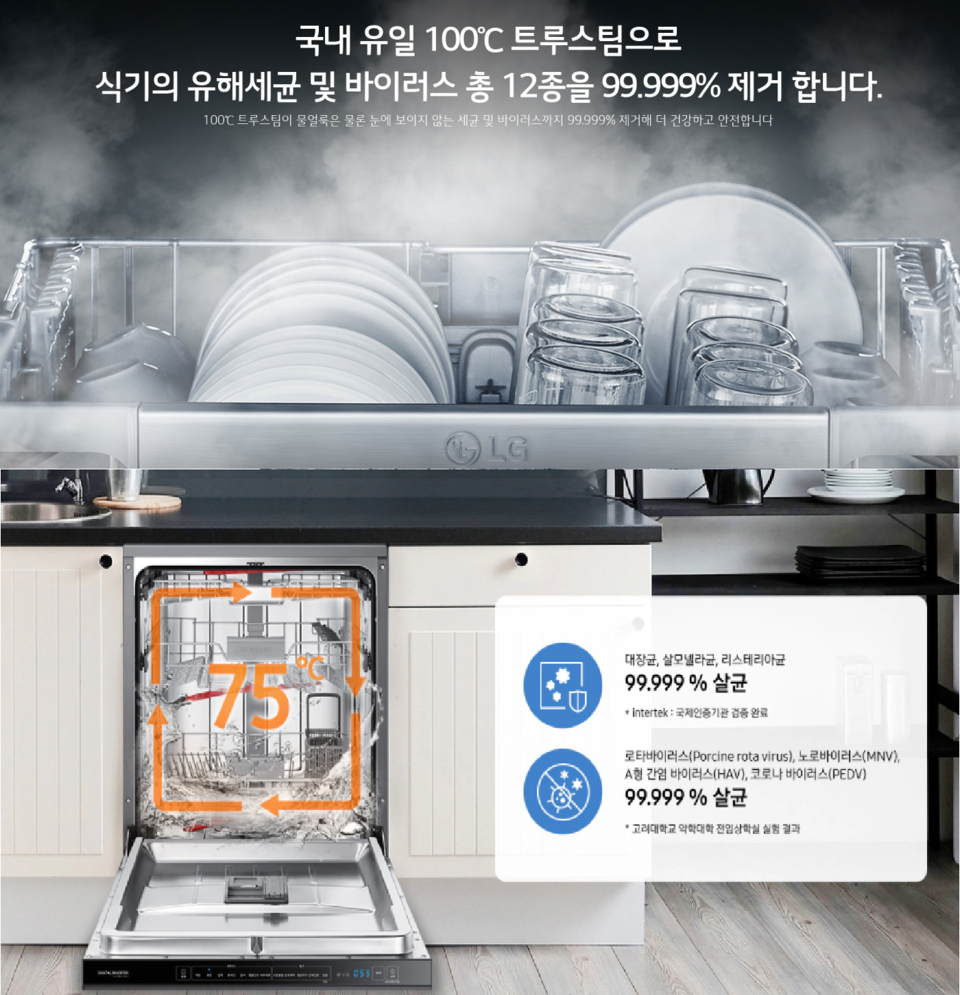 살균력도 둘다 상당히 우수합니다. 99.999% 살균이 된다고 광고를 하네요. LG는 100℃에서 스팀이 나와서 살균하는 방식이고, 삼성은 살균하기 최적의 온도라고 하는 75℃에서 살균하는 방식입니다.