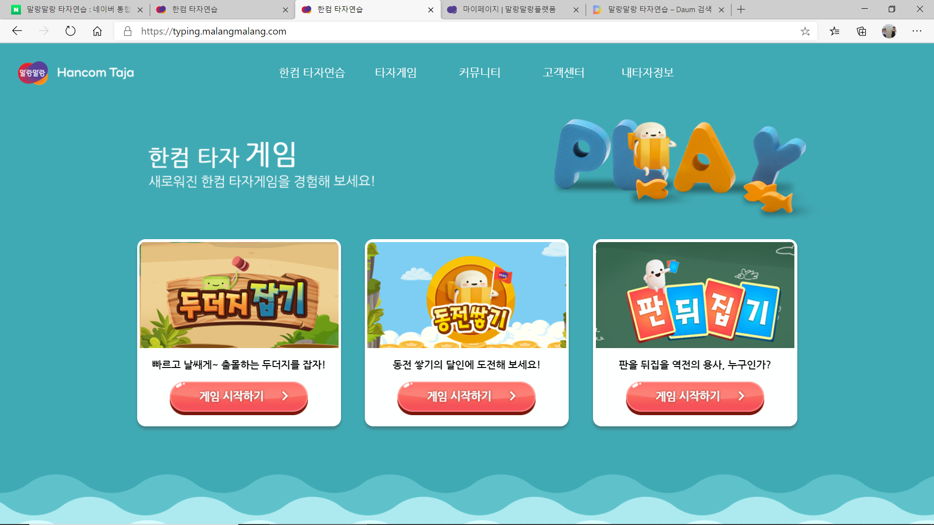 이렇게 타자연습만 하는 게 아니라 타자게임을 할 수도 있다.