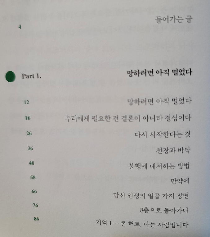목차를 보면 대략의 이야기가 어떻게 펼쳐질지 대략 예상이 되어