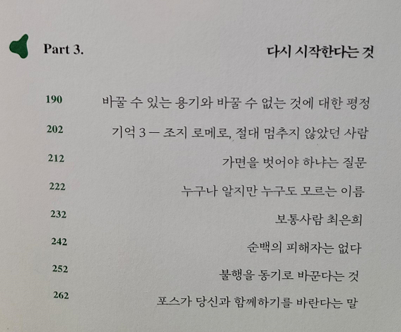 읽으며 마음에 꼭 담아두고 싶은 몇몇 부분을 발췌헤서 남기고 싶다.