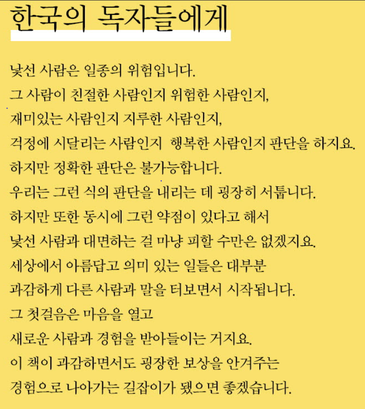 우리는 낯선 이에게 말거는 방법도 대답을 해석하는 것도 서툴다는 기본 가정하에