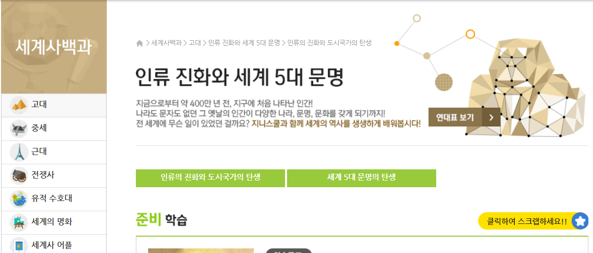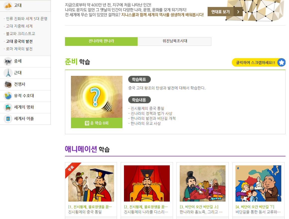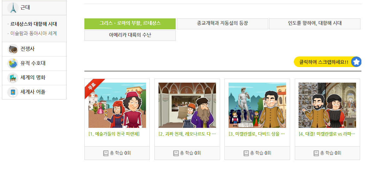 한국사에서도 고려시대까지만 있었는데 세계사도 중세까지만 확장학습이 있고 근대부터는 애니메이션만 있네요