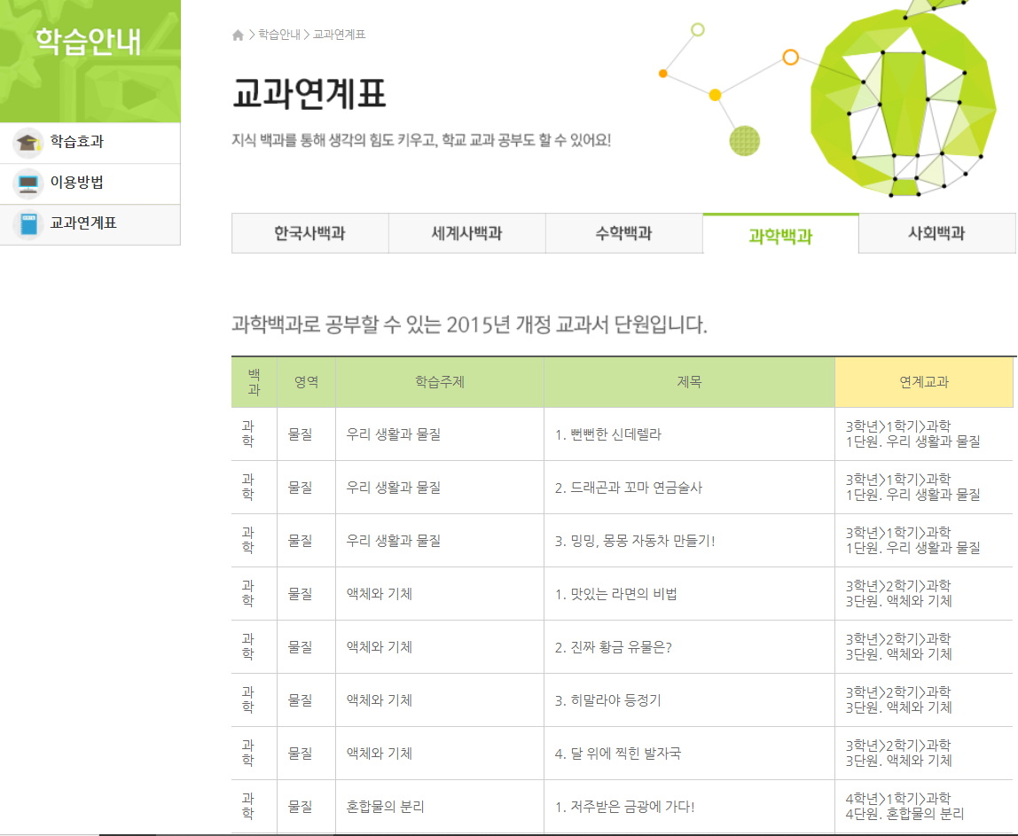 내용을 전체적으로 살펴보니 3학년부터 6학년 과학까지 내용이 표함되어 있네요.