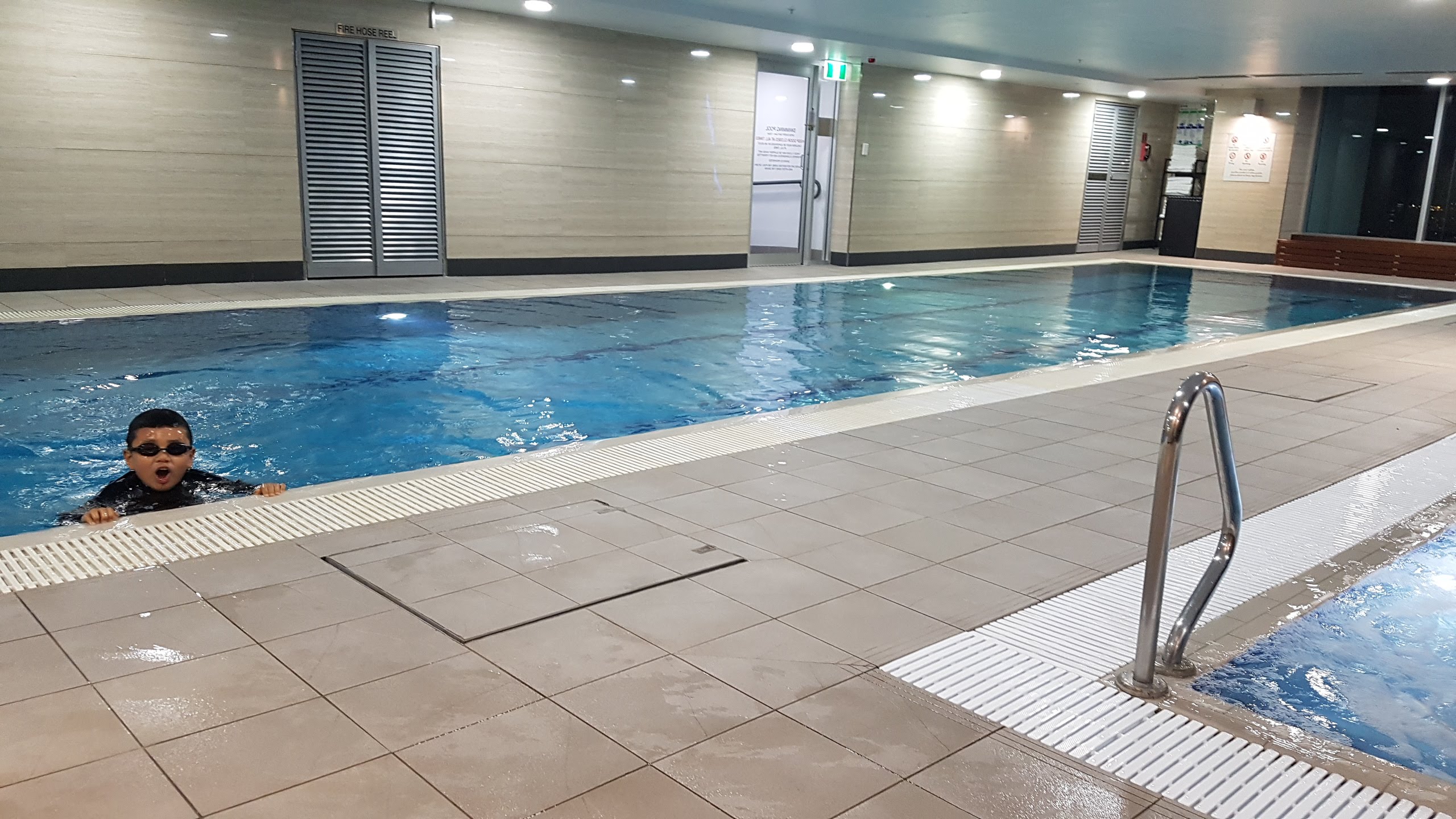 쇼핑을 마치고 숙소로 돌아옵니다. 아이들과 저는 숙소 수영장에서 놀고 아내는 다시 먹거리 쇼핑을 위해 coles 쇼핑을 갑니다. 수영장에 사람이 아무도 없네요. 전세낸 듯 신나게 놀아봅니다. ^^