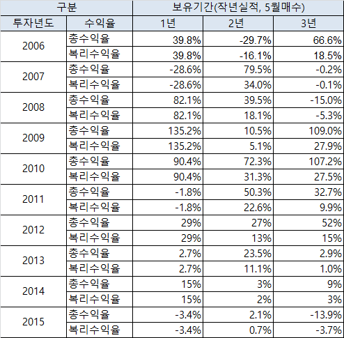위의 표에서 중요한 점은 첫해에 수익이 나지 않더라도 최대 3년안에는 수익이 난다는 것을 확인할 수 있습니다.