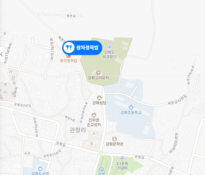 강화도는 지붕없는 박물관이라는 별명이 있죠. 이름에 걸맞게 곳곳에 역사와 관련된 곳이 많아요. 그 중에서도 왕자정 묵밥은 강화고려궁지와 우리나라 최초의 한옥 성당인 강화성당 근처에 있습니다. 여기 가실 때 꼭 가시면 좋을 것 같아요.