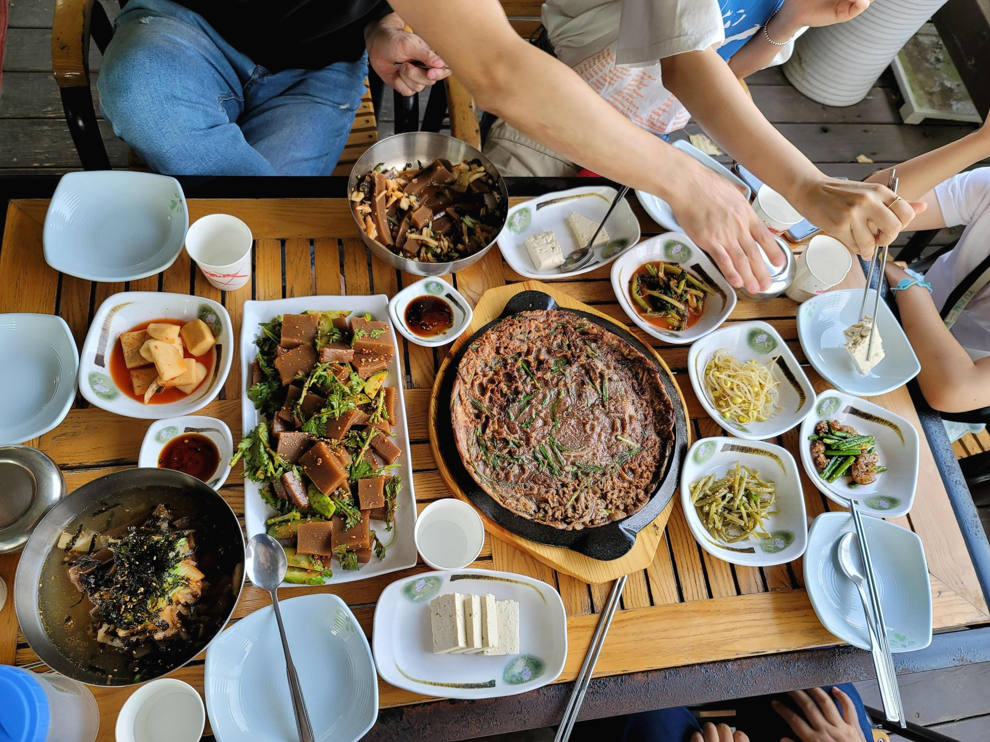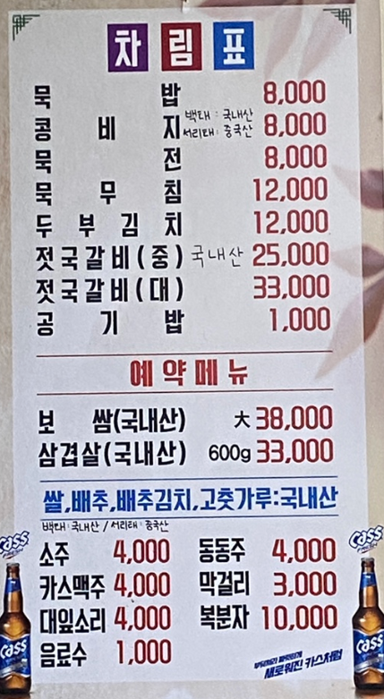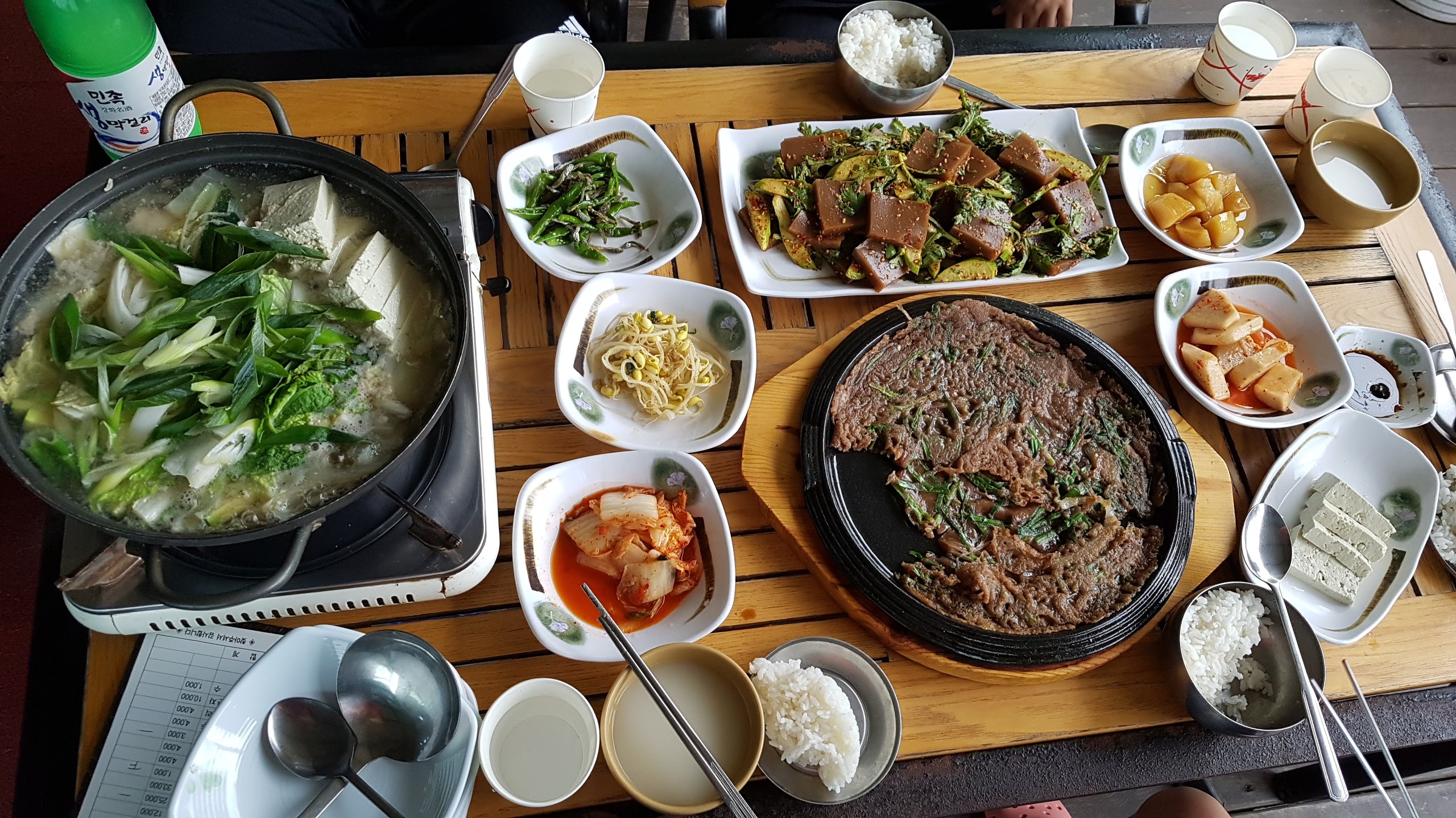 이것은 지난 8월에 갔을 때 사진입니다. 이날은 젓국갈비와 묵전, 묵무침을 공기밥과 먹었어요. 동동주와 함께요.