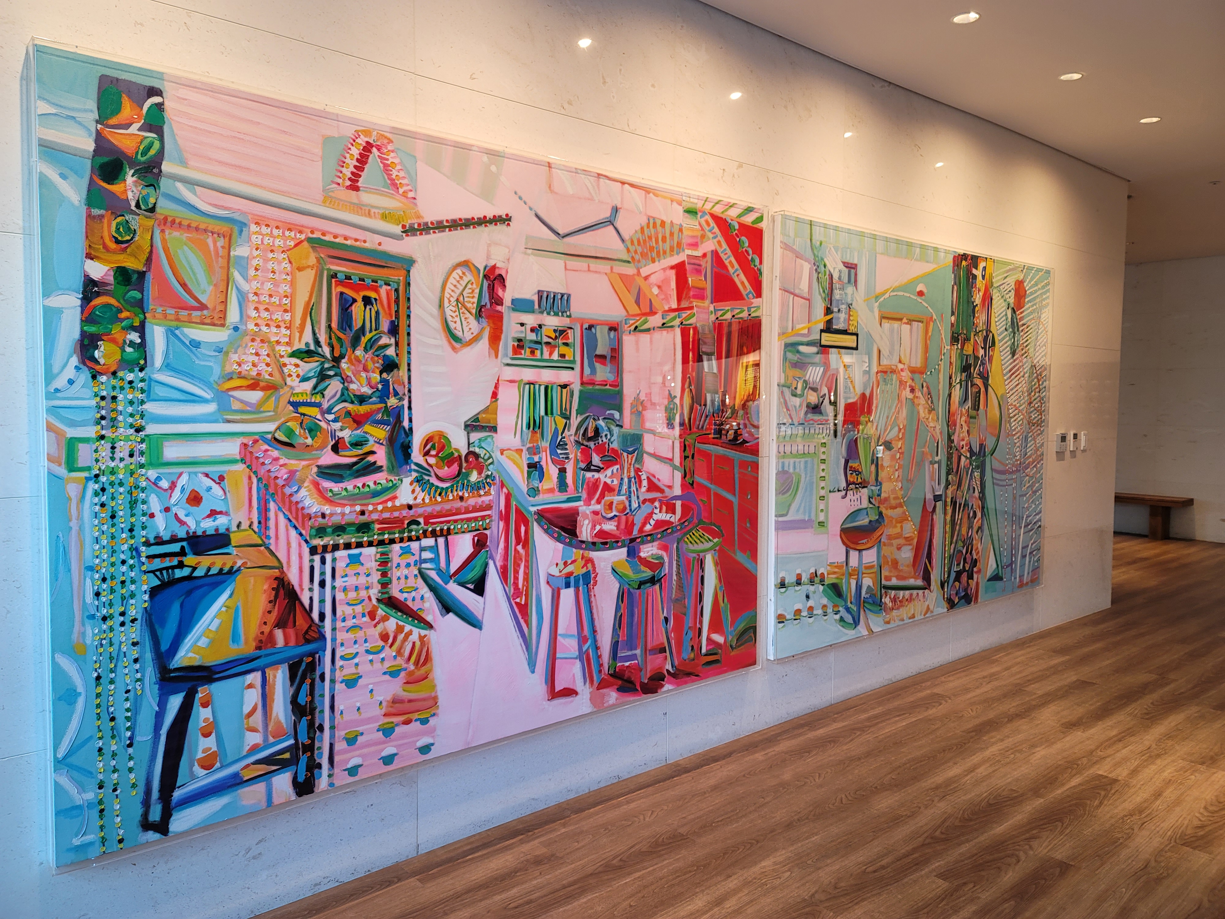 로비층으로 엘리베이터 타고 올라오면 이런 그림이 먼저 보여요.