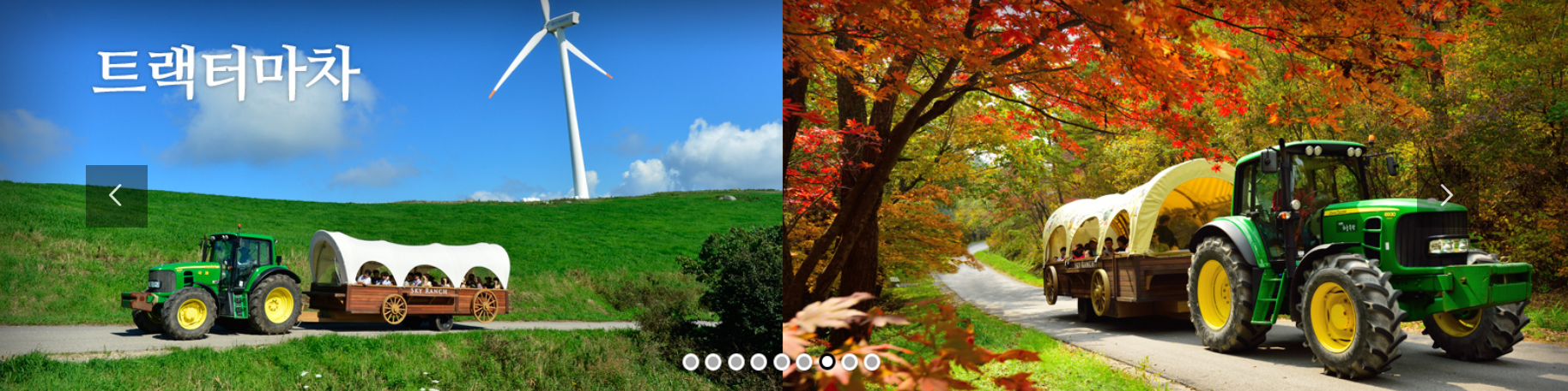 사람이 많은 주말이라 그런지 같은 시간에 트랙터 2대가 출발합니다. 앞 트랙터의 제일 뒤에 탄 덕에 이런 사진도 찍어봅니다.