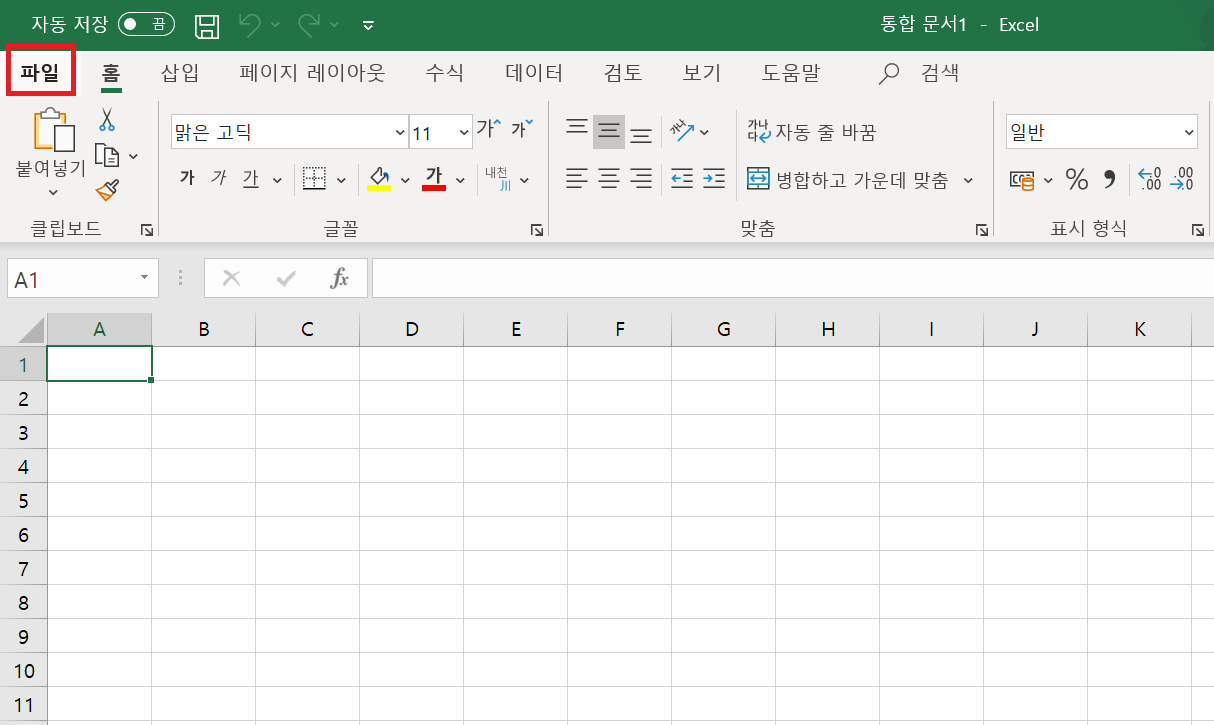 왼쪽 상단의 '파일' 메뉴를 클릭합니다.