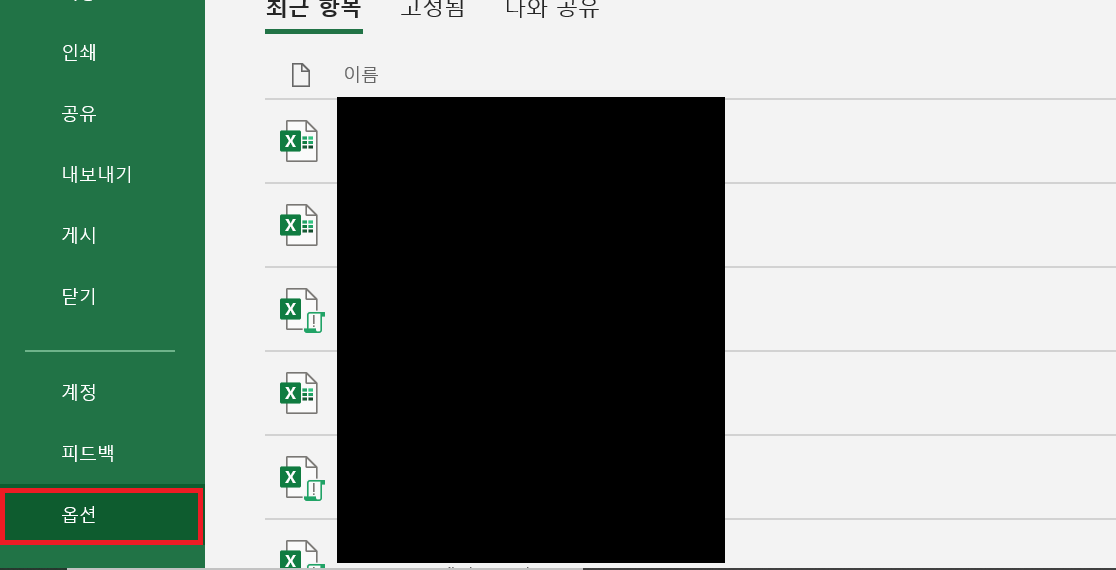 왼쪽 메뉴에서 하단에 '옵션'을 클릭하세요.